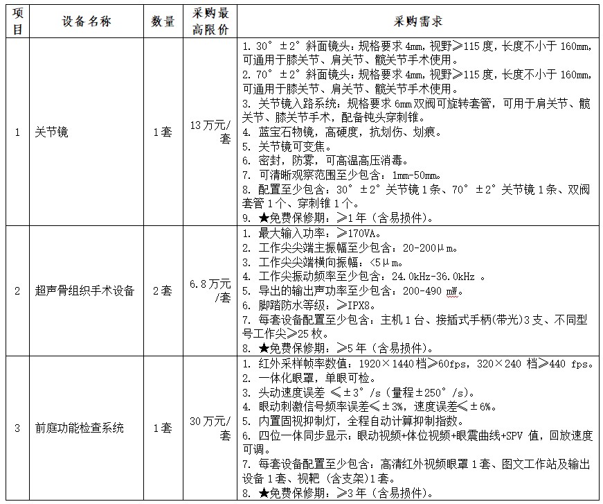 备注:具体未尽事项请电咨我院医械科。参与调研产品必须满足★条款。